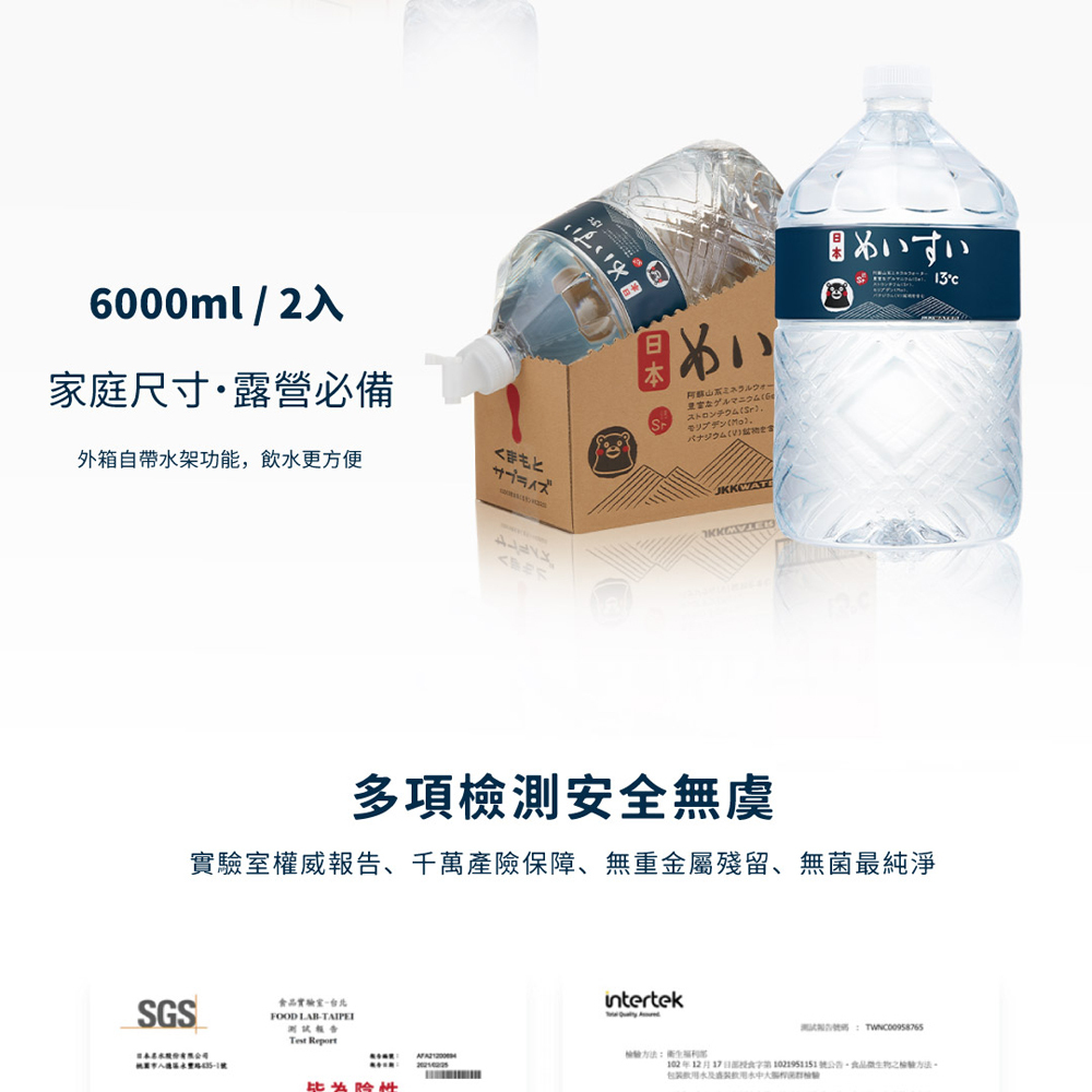 進口礦泉水 / 日本原裝 JKKWATER 日本名水13度c (6000ml x 2入/箱)【礦泉水/天然水/軟水】