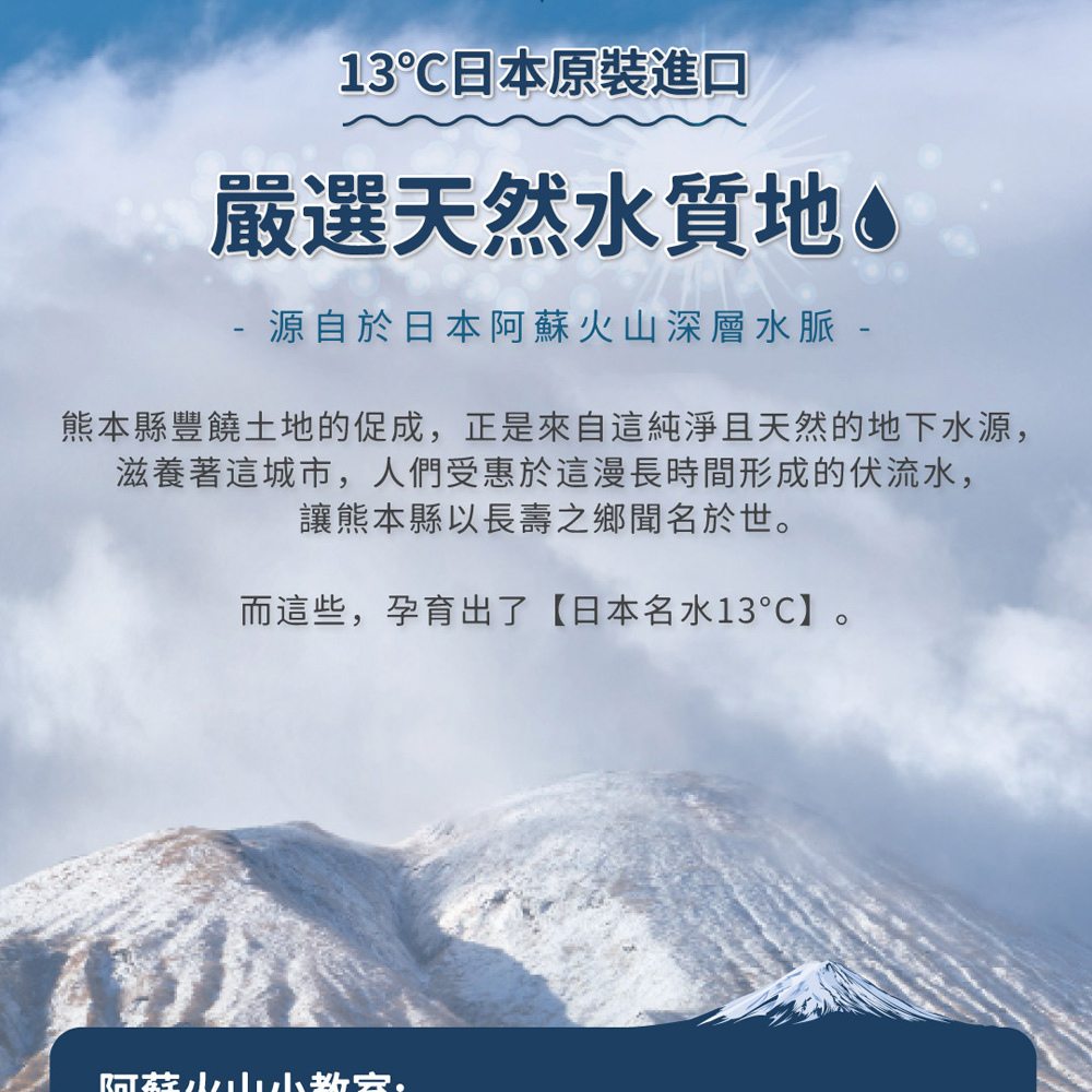 來自阿蘇火山的天然好水「日本名水13度C」