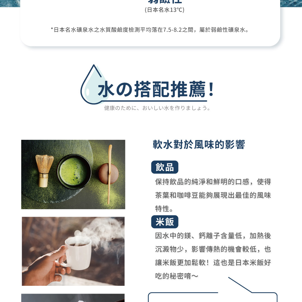 ✔水質總硬度僅36mg/L,PH值8的天然軟水